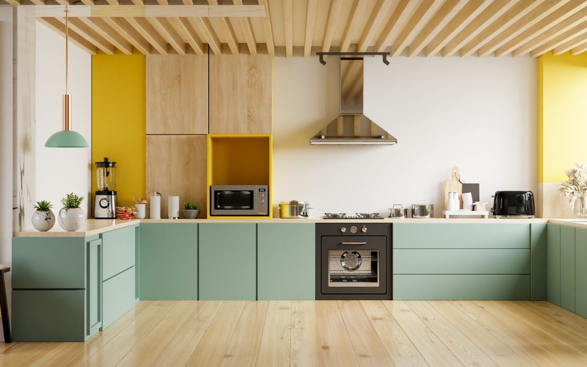 cocina moderna con suelo de madera